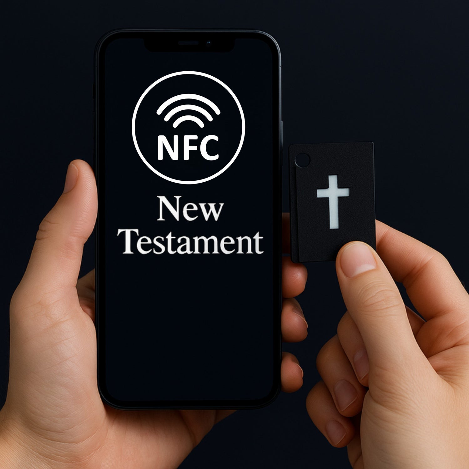 Tap the New Testament Keychain with your phone and instantly open a curated Bible verse. No batteries, no pairing—just scripture a tap away.